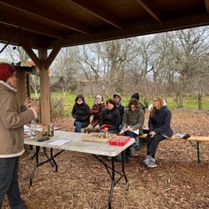 Le groupe se constitue , d’une dizaine de volontaires âgés de 13 ans à …++. Tous semblent assidus quant aux explications de Caroline.
